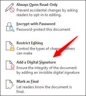 Şimdi görünen açılır menüde "Dijital İmza Ekle" i tıklayın.
