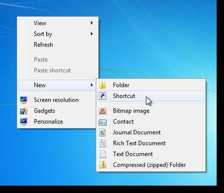 Masaüstüne sağ tıklayın ve Yeni | Açılır menüden kısayol.