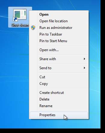 Varsayılan simge, kısayolun ne yaptığını pek temsil etmez, bu yüzden onu değiştirelim. Bunu yapmak için kısayola sağ tıklayın ve Özellikler'i seçin.
