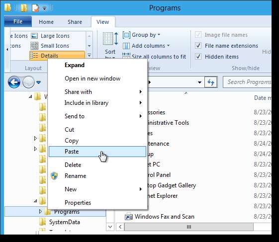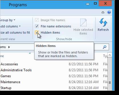 NOT: ProgramData dizini gizli bir dizindir. Erişim sağlamak için, Görünüm sekmesindeki Göster / gizle grubundaki Gizli öğeler onay kutusunu tıklayın.