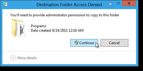 Kısayolu belirtilen dizine yapıştırın. Dosyayı yapıştırmaya çalıştığınızda muhtemelen aşağıdaki iletişim kutusunu göreceksiniz. Dosyayı dizine yapıştırma izni vermek için Devam'ı tıklayın.