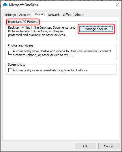 Microsoft, bu işlevselliği "önemli PC klasörleriniz" nden "tekrar yönetmeye" olarak yeniden adlandırdığından beri, ancak daha önce olduğu gibi hala aynı şekilde çalışır.