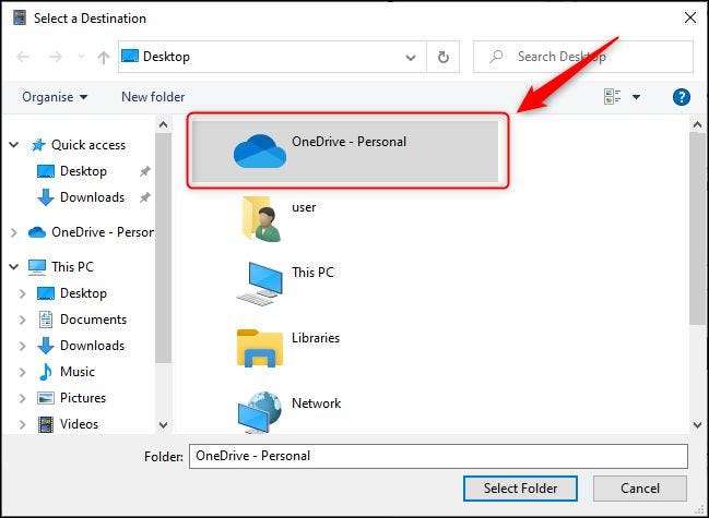 Ardından, klasör diyalogunda "OneDrive" yı çift tıklatın.