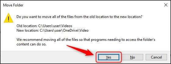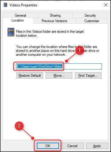 Video klasörünüzün yeri şimdi seçtiğiniz kişiyle değişecektir. Diyalogu kapatmak için "Tamam" a tıklayın.