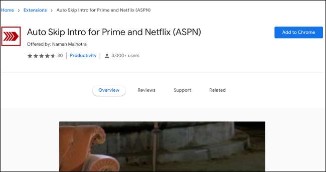 Chrome Web Store'dan yükledikten sonra, Netflix genişletildi Bir parmağınızı kaldırmak zorunda kalmadan, introyları otomatik olarak atlayın ve atlayın.