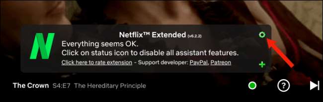 Ayrıca, Chrome'daki Netflix oyuncusuna yeşil bir nokta ekler. Üstesinden gelin ve daha fazla özellik ve ayar için minik dişli simgesine tıklayın.