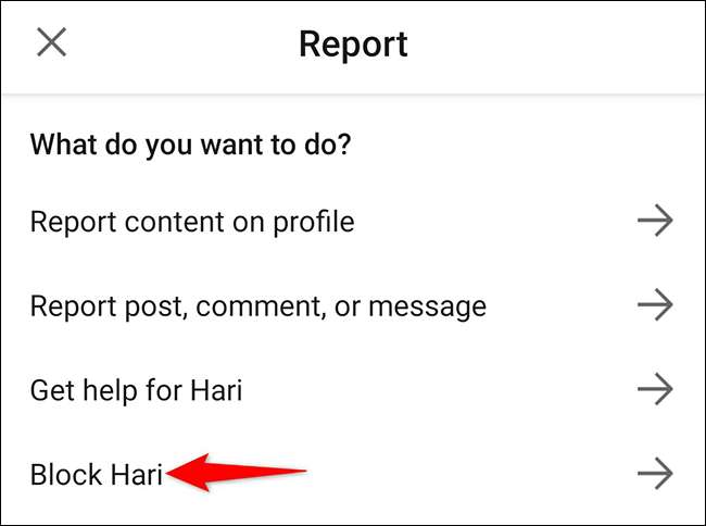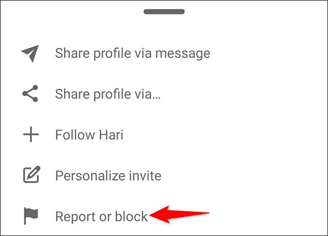 Üç noktalar menüsünden "Rapor veya Blok" seçeneğini seçin. Görmek için kaydırmanız gerekebilir.