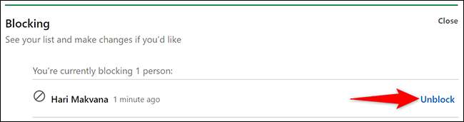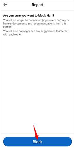 Ve bu kadar. LinkedIn şimdi hesabınızda seçilen kullanıcıyı engelledi. Eğlence!