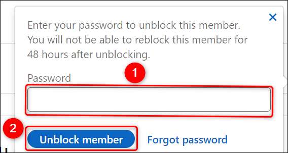 Açılan istemde, "Şifre" alanını tıklayın ve LinkedIn şifrenizi yazın. Ardından "engellemeyi kaldır" ı tıklayın.