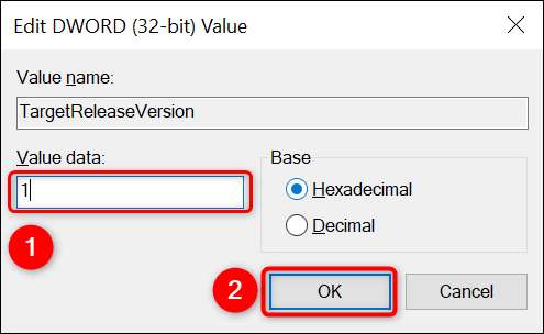 “Dize Düzenle” kutusunda, “Değer verisi” alanını ve türünü (tırnaklar olmadan) “21H1”, ya da her türlü tercih sürümüdür tıklayın. Sonra "Tamam" i tıklayın.