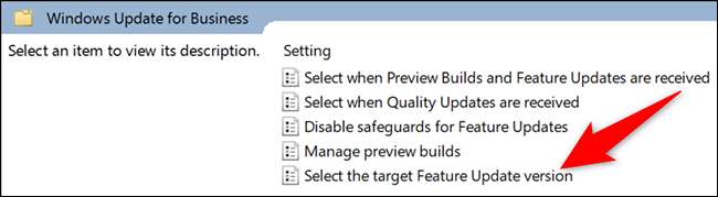 Sağ bölmede, "Hedef özelliği güncelleme sürümünü seçin" girişini çift tıklatın.