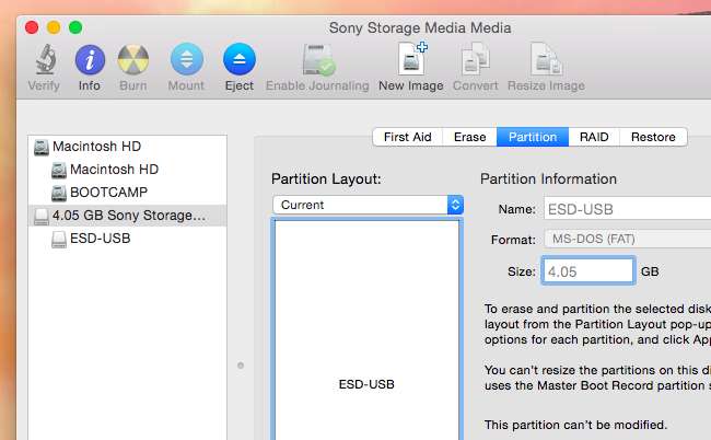 Önce, USB sürücüsünü Mac'inize takın ve Disk İzlencesi uygulamasını açın . USB sürücüsünün bir MS-DOS (FAT) bölümü ile biçimlendirilip biçimlendirilmediğini kontrol edin. Değilse, bölümü silin ve bir ExFAT bölümü değil, bir FAT bölümü oluşturun.