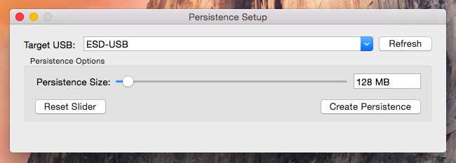 Sürücüyü yeniden başlatmadan önce, burada bazı diğer seçenekleri değiştirmek isteyebilirsiniz. Örneğin, sürücüde "kalıcılık" kurabilirsiniz ve USB sürücünün bir kısmı dosyalarınız ve ayarlarınız için ayrılacaktır. Bu yalnızca Ubuntu tabanlı dağıtımlar için çalışır.