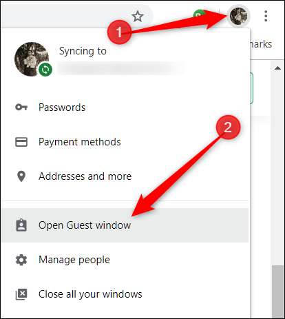 Chrome açıkken, sağ üst köşedeki profil resminizi ve ardından "Misafir Penceresini Aç" ı tıklayın.