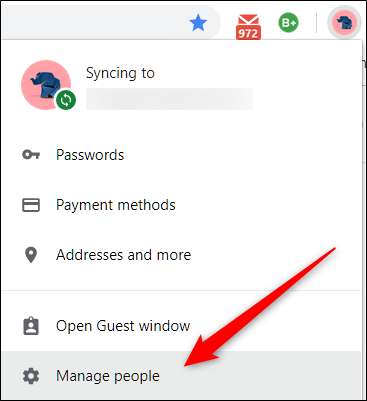 Herhangi bir nedenle "Misafir Penceresini Aç" seçeneğini görmüyorsanız endişelenmeyin. Tarayıcınız için Chrome hesaplarının listesini içeren bir pencere açmak üzere "Kişileri Yönet" i tıklayın.