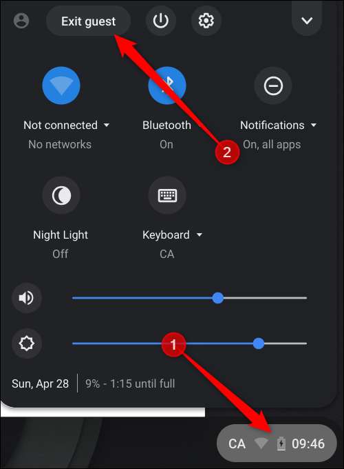 Bir misafir hesabından çıkış yapmak için, sistem tepsisindeki zamanı tıklayın ve ardından "Misafir Oturumundan Çık" ı tıklayın.