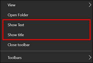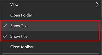 Sonra, görev çubuğuna sağ tıklayın ve "Metin Göster" ve "Başlık Göster" seçeneğini kaldırın.