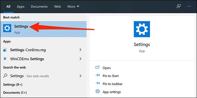 , “Başlat” menüsünü açın aramak “Ayarlar” ardından ilk sonucu tıklayın. Ayrıca Windows'u basabilirsiniz + i hızla Ayarlar penceresini açın.
