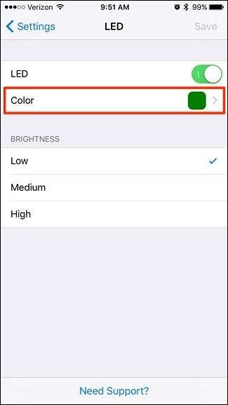 Bunun yerine, seçtiğiniz rengin SkyBell biriminde gösterildiğini görmek için ekranın sağ üst köşesindeki "Kaydet" e basmanız gerekir.