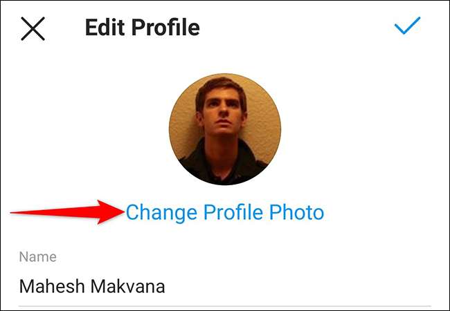 Geçerli profil resminin altındaki "Profil Düzenle" sayfasında, "Profil fotoğrafını değiştir" e dokunun.