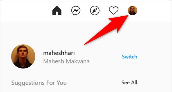 Instagram sitesinde, sağ üst köşeden, profil simgesini seçin.