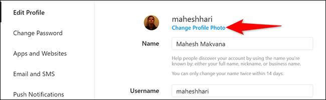 Sağ bölmede, Instagram kullanıcı adınızın altında, "Profil fotoğrafını değiştir" i tıklayın.