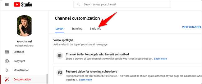 Bir "Kanal Özelleştirme" sayfası göreceksiniz. Burada, üstte "Temel Bilgi" nı tıklayın.