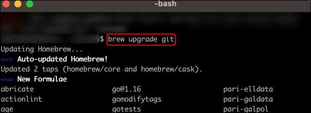 Homebrew'in en son sürümünü kullanmıyorsanız, önce Homebrew önce güncellenir. Bir zamanlar bittiğinde GIT güncellenir.