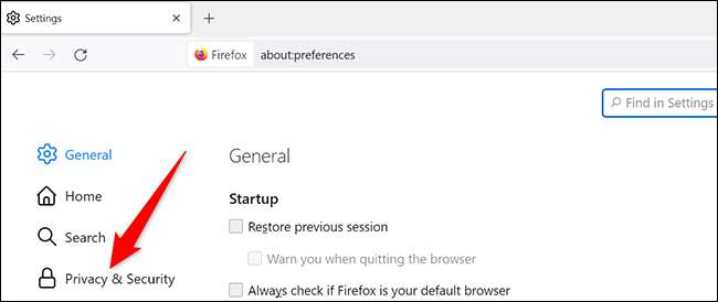 "Ayarlar" sayfasında, soldaki kenar çubuğunda, "Gizlilik ve AMP; Güvenlik."