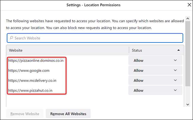 Firefox'ta Windows, Mac, Linux, Chromebook ve Android'de, konumunuza erişebilecek sitelerin bir listesini görüntülemek için bir Ayarlar menüsünü açabilirsiniz. İPhone ve iPad'deki Firefox'ta, o listeyi göremezsiniz. İstersen yapabilirsin konum servislerini etkisiz hale getir Bu iki cihazda, sitelerin nerede bulmasını önlemek için.
