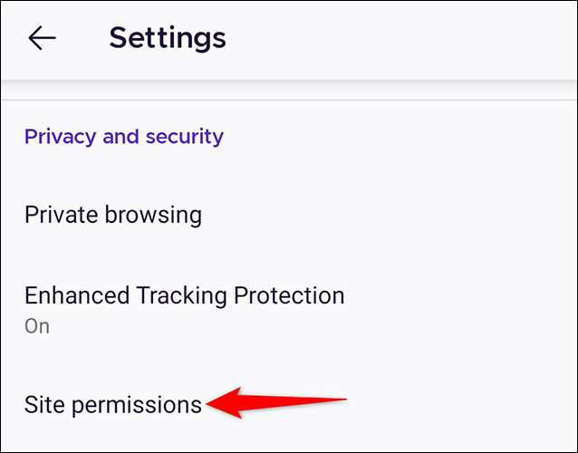"Ayarlar" sayfasında, "Gizlilik ve Güvenlik" bölümünde "Site İzinleri" e dokunun.