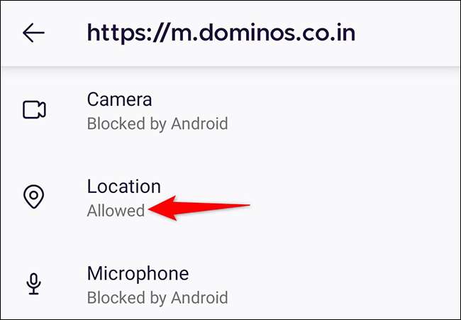 Bu özel site için konum erişimini iptal etmek istiyorsanız, siteye dokunun. Açılan "Konum" ekranında, "Engellenen" üzerine dokunun.
