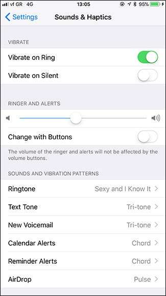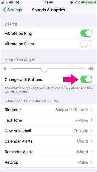 Zil Sesleri ve Uyarılar altında, Düğmelerle Değiştir yazan anahtara geçin.