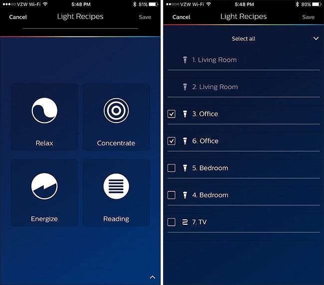 Öte yandan Light Recipes, okuma, konsantre olma, rahatlama vb. Gibi farklı senaryolar için hazırlanmış önceden hazırlanmış sahnelerdir. Aralarından seçim yapabileceğiniz yalnızca dördü var, ancak umarım Philips yakın gelecekte daha fazlasını ekler.