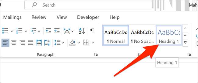 Başlık seçilirken, Word penceresinin üstündeki "Stiller" bölümünde, "Başlık 1" stilini tıklatın. Bunu belgenizdeki tüm başlıklar için yapın.