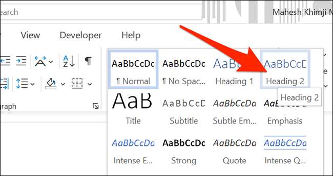 Sonra, başlığınızın altındaki paragrafı seçin. Ardından, üstteki "Stiller" bölümünde, "daha fazla" seçeneğini tıklayın ve ardından "2. Heading" seçeneğini seçin. Tüm belge paragraflarınızı bu şekilde biçimlendirin.