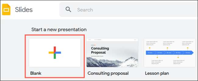 Ziyaret Google Slaytları , oturum açın ve ana sayfada yeni bir sunum başlatın altındaki "Boş" seçeneğini tıklayın.