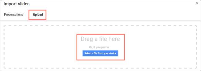 Açılır pencerede, Yükle sekmesini seçin. Sonra da sürükleyin PPTX dosyası Pencerenin üzerine veya "Cihazınızdan bir dosya seçin."