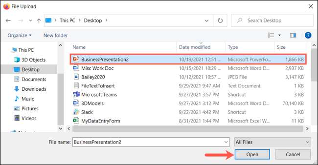 PowerPoint dosyanızı bulun ve seçin, ardından "Aç" ı tıklayın.