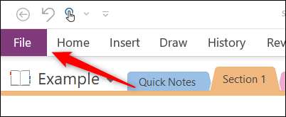 Başlamak için, fırlatma Windows için OneNote. Eğer bir PDF dönüştüğünde istiyoruz OneNote not defteri açın. DoIu sonra şeridindeki “Dosya” sekmesine tıklayın.