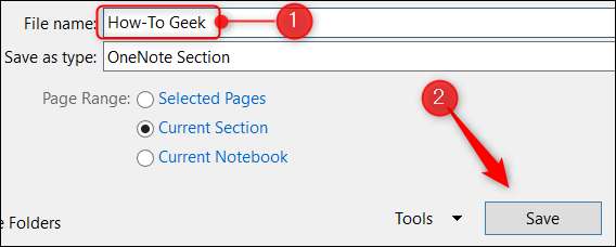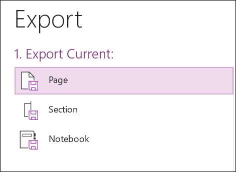 Sonra, “1'den ihraç etmek istediğiniz defterin parçası seçin. İhracat Akım”grubudur. Sen “Sayfa”, “Bölüm” veya “şu anda çalışıyorsanız o Notebook” arasında seçim yapabilirsiniz.