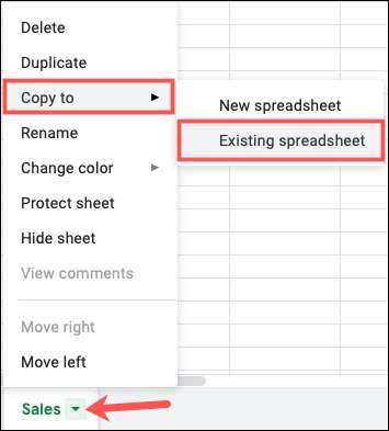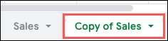 Sayfanın sekmesindeki oku tıklayın. İmlecinizi, POP-OUT menüsünde kopyalamak ve "mevcut elektronik tablo" ı tıklayın.