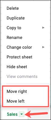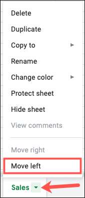 Bir elektronik tabloyu Google sayfalarında taşımak için seçenekleriniz, Sekme satırında doğru veya sola doğru hareket eder.