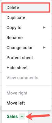 Bir sayfayı Google sayfalarında silmek için, sayfanın sekmesindeki oku tıklatın ve "Sil" seçeneğini seçin.