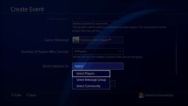 Son olarak, davetiyelerin kime gönderileceğini seçin: belirli oyuncular, bir mesaj grubu veya tüm topluluk (isterseniz).