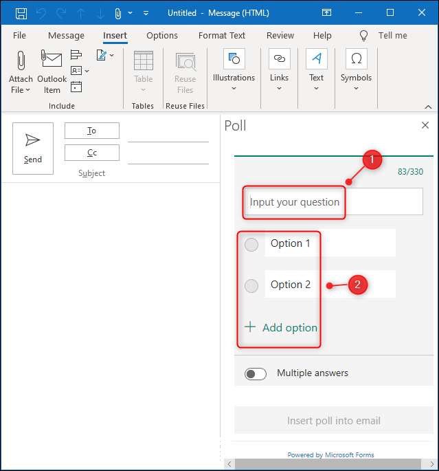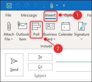 Microsoft Outlook uygulamasını açın ve yeni bir e-postada, Ekle ve GT; Anket.