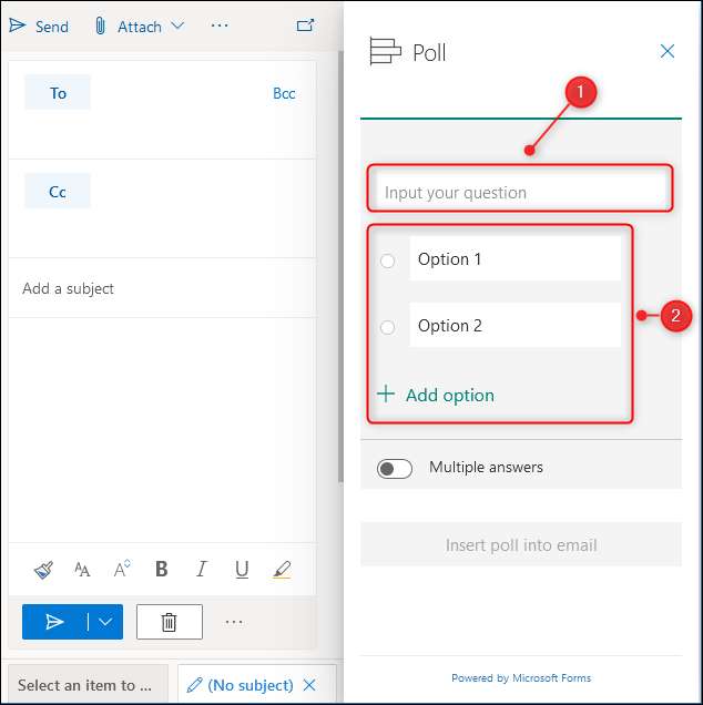 Açık Outlook'un web sitesi ve yeni bir e-postada, e-postanın altındaki üç nokta menü simgesine tıklayın ve ardından "Anket" seçeneğini seçin.