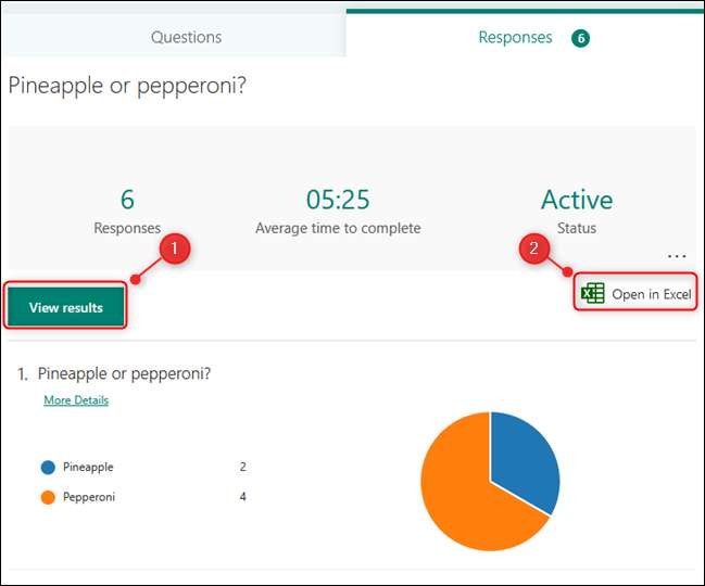 Bu size sonuçların bir dökümü gösterecektir. Her kişinin nasıl oy kullandığını görmek için "Sonuçları Görüntüle" nı tıklayın veya sonuçları bir elektronik tabloya vermek için "Excel'de Aç" seçeneğini belirleyin.