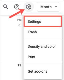 Ziyaret etmek Google Takvim Web Sitesi ve oturum açın. Ayarlar menüsünü açmak ve "Ayarlar" seçmek için sağ üstten dişli simgesini tıklayın.