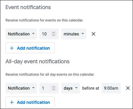 Etkinlik ve Tüm Günlük Etkinlik Bildirimleri : Zamanlı ve günlük etkinlikler için varsayılan bildirim zamanlarını ayarlayın.